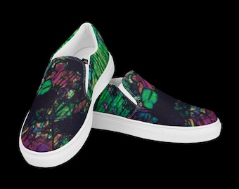 Women’s slip-on canvas shoes with geological thin section mineral photography